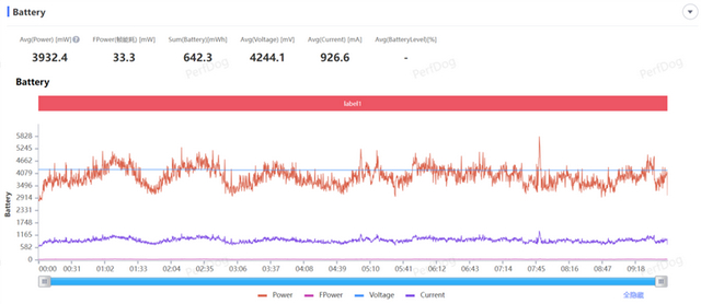 游戏的平均功耗为3.93W左右,能效比为30.08FPS/W。