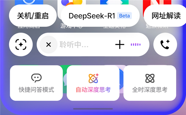魅族Note 16 Pro的Aicy语音助手则通过创新设计优化了这一痛点,其语音助手底部提供快捷问答、自动深度思考、全时深度思考三种模式: