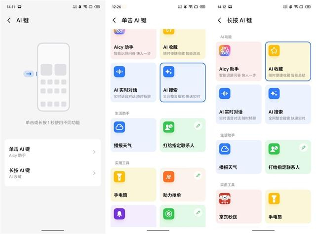 结合手机侧面的AI按键操作,可通过短按与长按两种快捷方式调用不同功能。