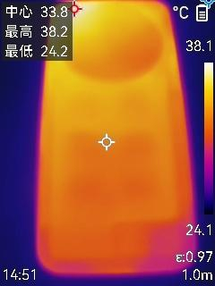 游戏过后机身背面最高温度为38.2摄氏度。