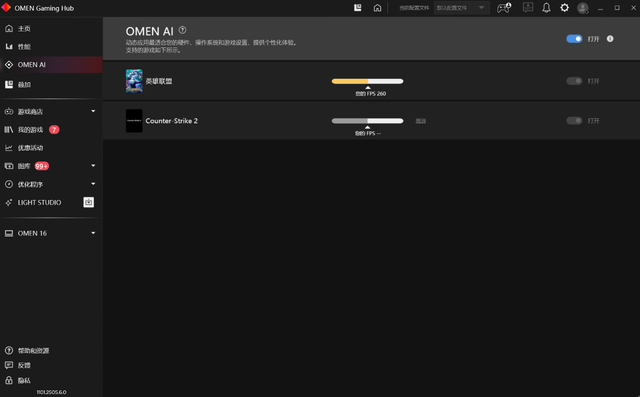 此外,OMEN Gaming Hub中的OMEN AI功能也相当实用,这项功能可以根据硬件情况、系统设置和游戏设置等因素,基于机器学习和人工智能技术,自动启用最佳的设置,以提升游戏帧数。目前OMEN AI支持《英雄联盟》和《CS2》,下面我在所有系统、软件设置均为默认的情况下,使用《英雄联盟》和《CS2》进行测试。