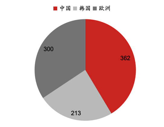中国锂电池企业出海欧洲具有显著竞争优势。根据Marklines披露数据,我们按照各企业欧洲布局产能规划进行测算,可以发现目前欧洲动力电池行业主要参与布局的企业包括:(1)中国企业远期规划产能达到362GWh;(2)韩国企业远期产能规划213GWh;(3)欧洲本土企业远期产能规划300GWh。