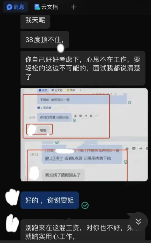 网帖显示,HR对其发表了,“你这也太娇气了,我天呢,38度顶不住”“该看看精神科了”等言论。