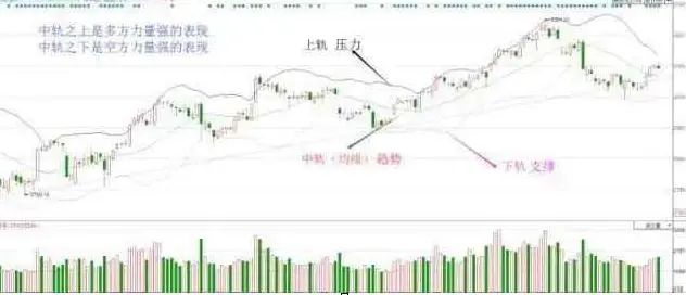 1)上中下三轨中有两个向上,预示多方可能胜出