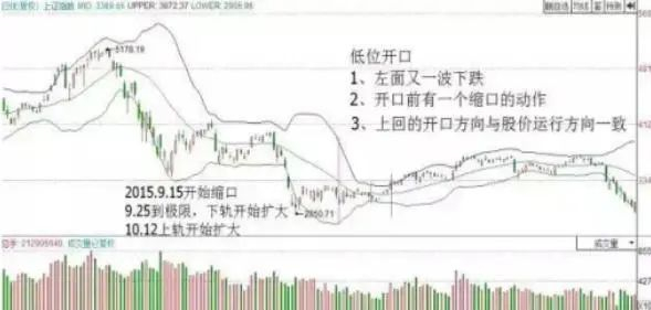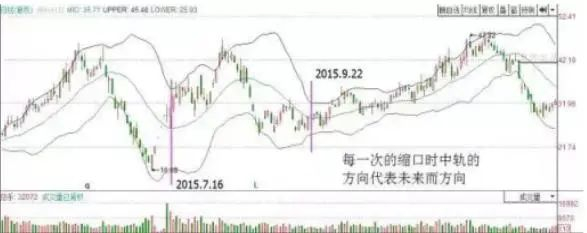 每一次缩口都预示要变盘,因为缩口后就会开口,所以缩口时要注意中轨的方向与股价的位置。