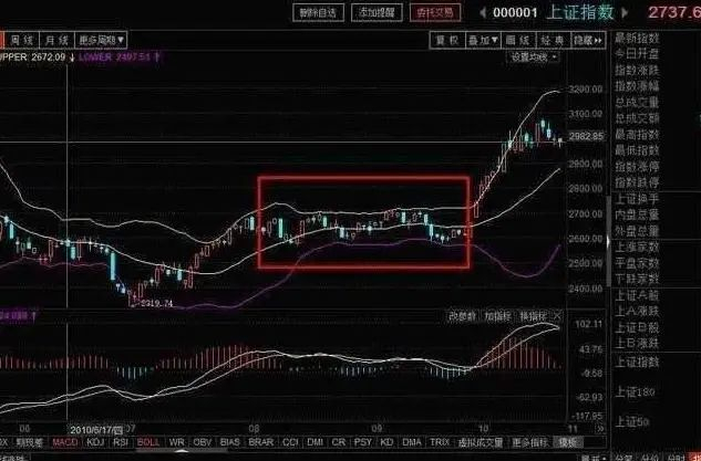 4,可将布林线和其他指标配合使用,效果会更好,如成交量,KDJ指标等。