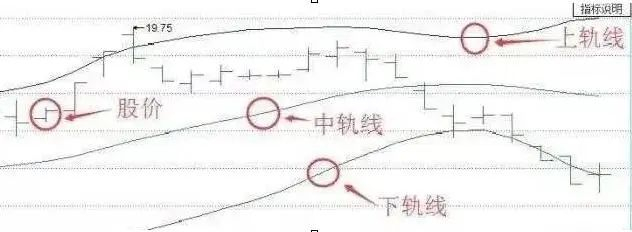 BOLL线又称为布林线指标,是研判股价运动趋势的一种中长期技术分析工具。该指标在图形中显示出三条线,由三条轨道线组成,其中上下两条线分别可以看成是股价的压力线(UPER,即上轨)和支撑线(LOWER,即下轨),在两条线之间是一条股价平均线(MID,即中轨)。通常情况下,价格线在由上下轨道间游走,而且随价格的变化而自动调整轨道的位置。
