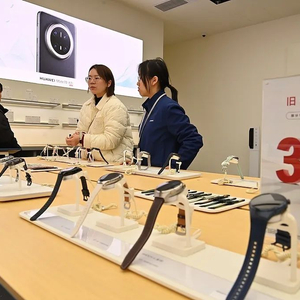 2025年3月29日,重庆市沙坪坝区的融创茂商场,市民在选购智能手表。视觉中国 资料图