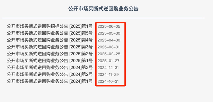 6月5日,央行发布消息称,为保持银行体系流动性充裕,自2025年6月6日开始,将以固定数量、利率招标、多重价位中标方式开展1万亿元买断式逆回购操作,期限为3个月(91天)。