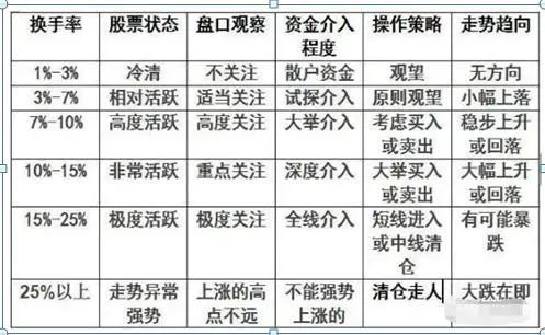 一般来讲,换手率较高的股票,往往也是短线资金追逐的对象,投机性较强,股价起伏较大,风险也相对较大。以下是一个日换手率的参考数据表: