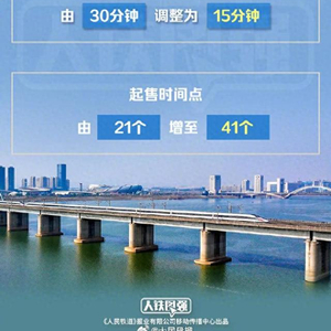 本次调整,将车票起售时间点间隔由30分钟调整为15分钟,仍在每日8时至18时间分布。由此,车票起售时间点由21个增至41个。例如,南京站车票起售时间点由8时,调整为8时15分;南昌站车票起售时间点由9时30分调整为9时45分;上海虹桥站车票起售时间点由13时30分调整为13时45分。