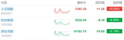 6月6日,A股三大指数震荡走弱,沪指收涨0.04%报3385点,为连续第四日录得上涨,深证成指跌0.19%,创业板指跌0.45%。