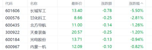 兵装重组概念大跌,长城军工跌超5%,甘化科工跌超2%,北方导航、天秦装备等跟跌。