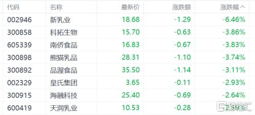 乳业股走低,新乳业跌超6%,科拓生物、南桥食品、熊猫乳品等跌超3%。个股消息面上,新乳业2024年增利不增收,去年营收同比下降2.93%,归母净利润同比增长24.8%。2025年Q1营收同比增长0.42%,归母净利润、同比增长48.46%。