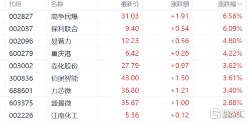 民爆概念涨幅居前,高争民爆、保利联合涨超6%,易普力、重庆港涨超4%,消息面上,三峡水运工程启动,项目总投资达766亿元,总工期100个月(不含12个月筹建期) ,爆破施工成核心环节。