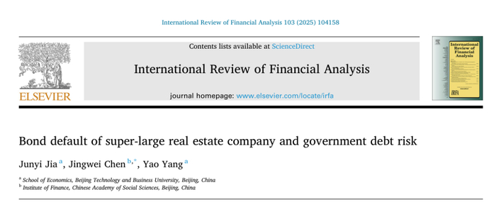 近期,陈经伟(通讯作者)合作学术成果在国际金融学Q1期刊《International Review of Financial Analysis》正式发表,该论文题目为“Bond default of super-large real estate company and government debt risk”(《超大型房地产公司债券违约与政府债务风险》)。论文合作者包括北京工商大学经济学院贾君怡和杨耀。