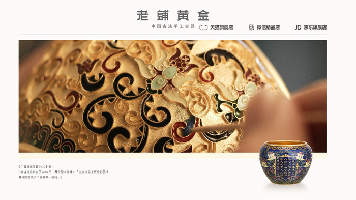 老铺黄金的产品设计和格调很难被模仿。老铺黄金的前身是“金色宝藏”,它本来就是做文玩文物摆件、黄金珠宝的品牌。它的客户群体,从20多年前就被定位为喜欢盘串的干部、政商人士,本身是很有社会地位的人。