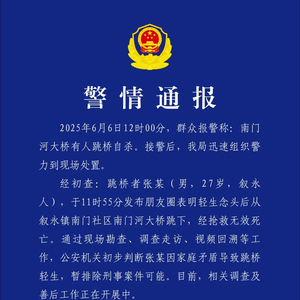 四川通报:“27岁男子跳桥自杀身亡”:系家庭矛盾导致轻生,暂排除刑案可能