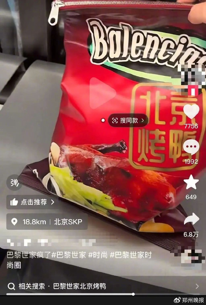 巴黎世家推出“北京烤鸭”包,售价15500元