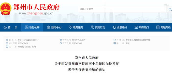 6月5日,郑州市人民政府印发《郑州市支持河南中牟新区加快发展若干先行政策措施》,共涉及18条举措。详情>>>