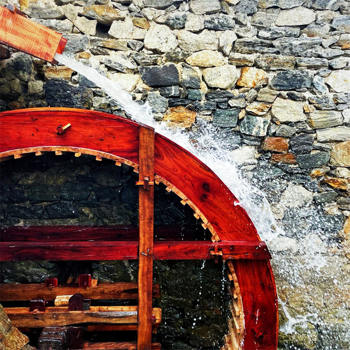 元阳梯田隐于山林,镶嵌于大自然之中。“森林—村寨—梯田—水系”四素同构,循环往复,生生不息。山顶的森林涵养水源,形成涓涓细流,为山腰的村寨提供生活用水,又为村寨下方的梯田灌溉提供水源;流水继续顺流而下,在低地的河谷中交汇成河流,再通过蒸腾作用将水分搬运回森林。在这一层层流转、生生不息的系统中,哈尼人还发明了“木刻分水”——在沟渠中设置横木,横木上凿出开口宽度不一的凹槽,以凹槽的大小宽度控制支渠水流的大小,让其刚好能满足下游的梯田灌溉需要。