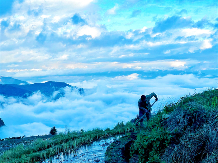 历经千年时光沉淀,元阳哈尼梯田的灌溉体系已发展成为集灌溉、防洪、生态保护于一体的综合系统。从涵养水源到垒埂放水,从“木刻分水”到稻种交换,从水沟修筑到赶沟冲肥,哈尼梯田精密复杂的农业、林业和用水分配体系,体现的不仅是丰富的生物多样性,更是一代代梯田开垦者、耕作者们认识自然、尊崇自然,与大自然和谐相处的生态理念,也是哈尼梯田可以传承至今的秘密。