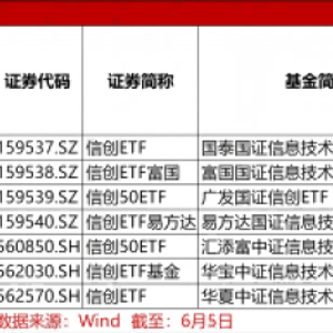 此外,还有易方达国证信息技术创新主题ETF、汇添富中证信息技术应用创新产业ETF、广发国证信创ETF短时间内获得显著资金流入,5月26日到6月5日规模分别增长3.05亿元、2.80亿元、2.25亿元。