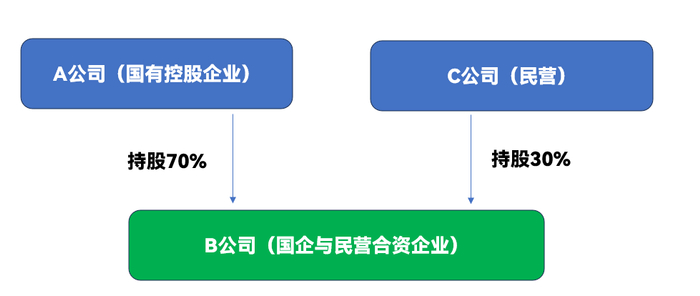 A公司系S市某国有控股企业,其中B国有公司出资70%,丙控制的C公司出资30%。甲、乙经B国有公司委派至A公司分别担任董事长、财务总监,丙被A公司董事会聘任为总经理。(为了便于大家直观理解,我来增加个图示见下)