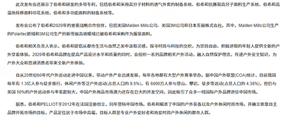据了解,伯希和主营冲锋衣、雨鞋等户外服饰和装备,依托于淘宝等电商平台的线上流量红利,伯希和凭高性价比迅速打开市场。但近年受市场环境影响,公司亦开始向高端化转型。