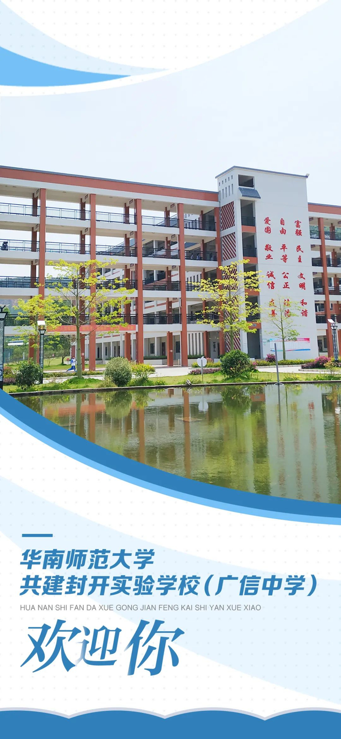 (3)符合华南师范大学共建封开实验学校(广信中学)参加自主招生条件,在提前自主招生批填报华南师范大学共建封开实验学校(广信中学)志愿,参加初中学业水平考试且在我校规定的报名并参加自主招生综合能力考核,具体招生范围、计划、标准、办法和程序等详见↓↓