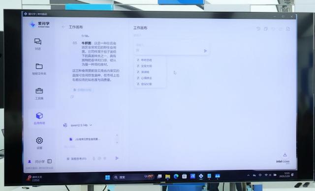 在英特尔与神州数码合作开发的《爱问学》软件中,用户可以轻松一键部署热门大模型。在现场演示中,英特尔轻薄本通过《爱问学》成功运行14B大模型,并从云南野生菌文档中提取信息为用户推荐了合适的食用菌种类。