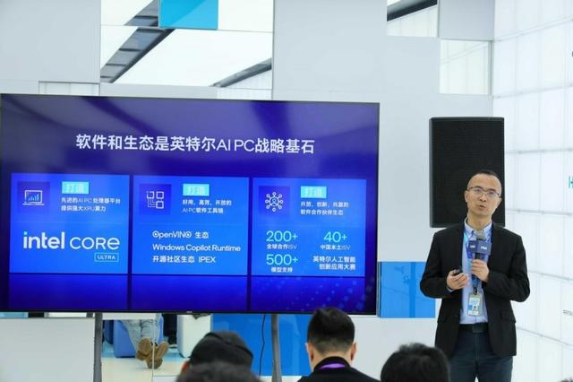用AI给游戏加了点“黑科技”只是英特尔推动AI PC快速向前发展的一个小缩影,围绕着AI行业、AI PC以及AI软件生态的落地,英特尔在当前的AI发展过程中正扮演着越来越重要的角色。在正式推出酷睿Ultra 200HX处理器的同一天,英特尔还通过一场交流会展示了其在AI PC领域的最新进展。在交流会上,英特尔中国区AI PC产品总监孙峪先生详细介绍了英特尔在AI PC领域的优势和竞争力。