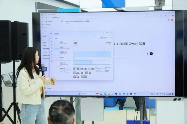 除了一体机、英特尔Arc显卡,作为AI PC概念的重要推动者,英特尔在AI PC端侧则通过酷睿Ultra系列处理器中的XPU架构驱动,帮助用户在本地轻松部署DeepSeek-R1系列大模型。英特尔在交流会现场通过搭载酷睿Ultra 200H处理器的轻薄本演示了在本地部署DeepSeek-R1-Distill-Qwen-14B大模型的表现。