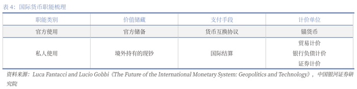 稳定币的发展中明确私人机构发行以法币或准货币资产发行代币,这既是与央行发行的数字货币相争,也是与传统货币的争夺。Cohen(1971)和Krugman(1984)提出了国际货币三大职能:交易媒介、计价单位和价值储藏。稳定币发行本质上是引入货币锚,给信息货币建立相应的币值信用,稳定币本身就具备了部分法定货币的功能。同时稳定币发行主体是公司而非央行,稳定币很可能在法币系统外在数字领域再次扩张。尽管有金融监管机构的努力,但是这种扩张可能是不可避免的。可以想象单独发币体系可以作为类比为小型商业银行,只不过存在于数字信息领域。