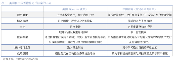 法币稳定币是主权国家对铸币的延伸,是刚刚发展起来的市场,这或许是人民币国际化的新路径。人民币国际化核心目的是提升中国在全球的话语权、降低金融风险并促进国际贸易投资。在传统货币框架下,人民币国际化路程较为艰难,并且美元是较难翻越的高山。但在区块链数字领域,人民币国际化更容易弯道超车。我国在数字领域具有天然的优势,是人民币区块链话的坚强基础。2025年5月美国和中国香港分别发行了自己的稳定币法案,从形式来看中国香港显得更为灵活,但是有更强国家背书和更强目的美国稳定币可能发展更为稳定。我国需要提高数字货币在金融体系中的战略定位,把区块链市场的货币竞争等同于现实世界中的货币竞争。