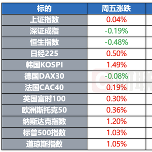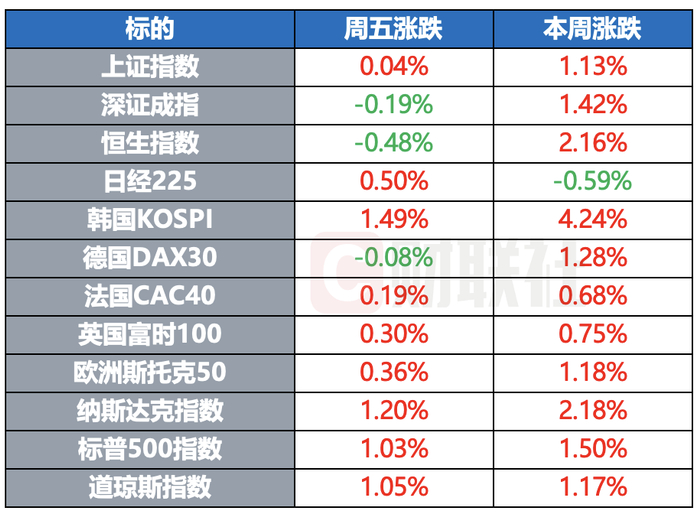 全球主要指数周五多数上涨,美股三大指数均涨逾1%。标普500指数本周累计上涨1.5%,道指涨幅为1.17%,纳指则涨2.18%。得益于近期的反弹,美股三大股指年内走势全部转为上涨。