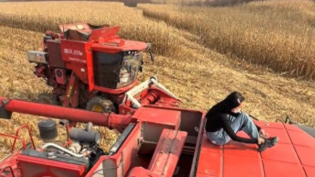 2004年出生的她,虽然操作收割机还不是很熟练,但已经是一个能干的“小帮手”。“我爸干这行二十多年了,去年我正式加入,今年是第二年。”她说这话时,脸上是云淡风轻的表情。但只有真正经历过的人才知道,这份“轻”背后,是烈日、灰尘和疲惫叠加出的沉重。