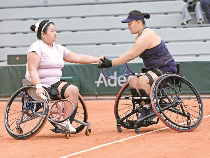 当日,在巴黎进行的2025法国网球公开赛轮椅网球女双半决赛中,中国组合李晓辉/王紫莹2比1战胜德鲁莱德(法国)/范库特(荷兰),晋级决赛。