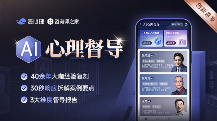 无督导,不咨询!每一位心理咨询师的成长,都离不开督导的专业支持。无论是初出茅庐的新手咨询师,还是经验丰富的资深心理咨询师,在他们的咨询工作中,督导都发挥着至关重要的作用。14年专业心理咨询品牌壹心理旗下的咨询师之家,以“专业赋能”为核心,构建了多层次、全方位的督导体系,以满足不同职业阶段咨询师的多元化需求,为他们的专业发展搭建坚实的桥梁。如今,壹心理·咨询师之家再次突破传统督导模式的局限,结合人工智能前沿技术,创新推出AI心理督导,为心理行业督导领域带来全新变革,开启了心理督导新时代。