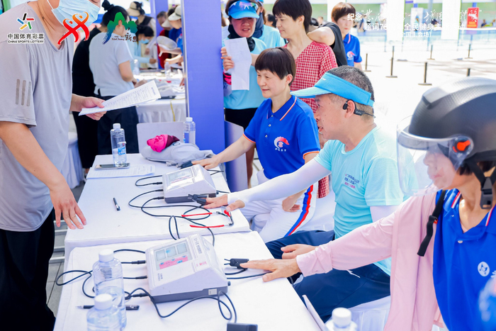 除激烈的定点投篮争霸赛外,康乐广场上热闹的体育市集成为主会场的另一大亮点,市集内包括运动健身展示、国民体质监测、运动体验、体育用品展示等多项活动。保龄球区前早已排起长龙,新昌市民李先生擦着汗笑道:“这橡胶球比标准保龄球轻一半,但想全中可得讲究巧劲!”匹克球、乒乓球、跳绳等趣味玩法也吸引了众多市民参与。