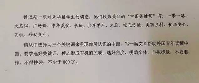 要求:选准角度,确定立意,明确文体,自拟标题;不要套作,不得抄袭;不得泄露个人信息;不少于800字。