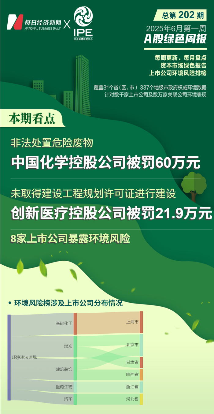 2025年6月第一周,哪些上市公司的环境保护与信披责任亮起了红灯?且看A股绿色周报第202期。