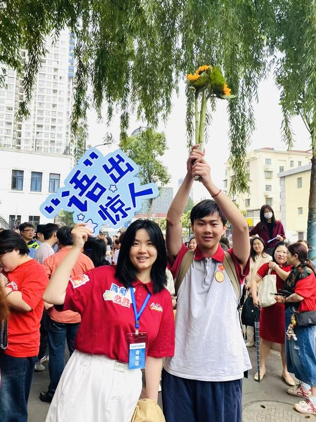 华政附中的老师带上了向日葵,祝福考生“一举夺魁”