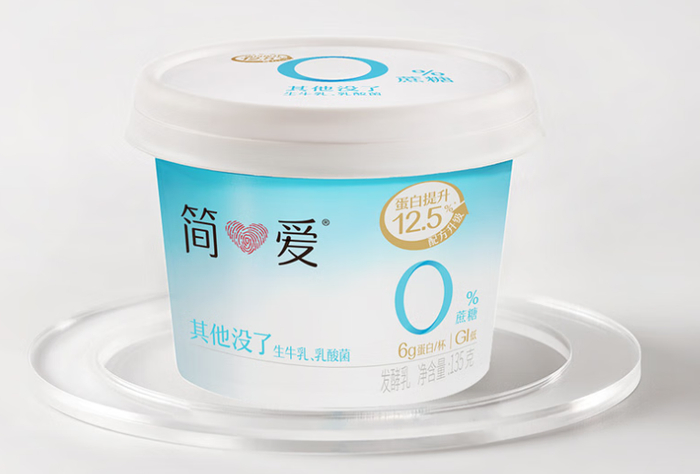 生活中仍然使用“0蔗糖”宣传饮品的品牌产品有君乐宝简醇、简爱酸奶。君乐宝简醇凭借“怕蔗糖,喝简醇”朗朗上口的广告语和简洁的包装,在市场上收获了大量消费者的喜爱。