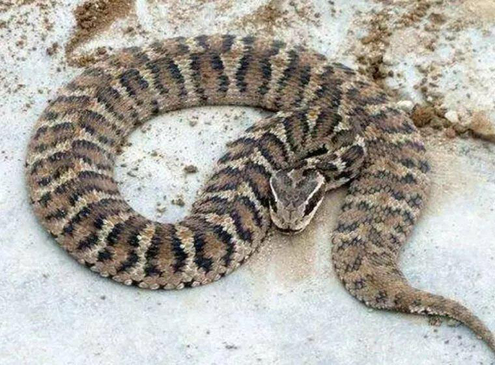 蝮蛇的体长通常在60~70厘米之间,头部略呈三角形,这是毒蛇的典型特征之一。它们的身体背面通常是灰褐色到褐色,头背上有一个深色的“∧”形斑,腹面则是灰白到灰褐色,杂有黑斑,看起来就像是穿着迷彩服的战士。