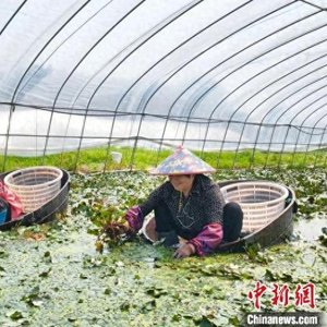 采菱人在大棚中劳作。秀洲区传媒中心供图