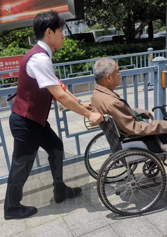 南昌市民 刘菊花:天气又热,很辛苦,我自己脚也走不动,他就等我,走一下,就等我一下,到了医院又叫保安帮我租轮椅,这个小伙子很好,我很感动。