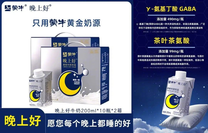 燕塘、蒙牛等大型奶企也都推出了各自的“晚安牛奶”,通过其他成分以期达到“晚安”效果。