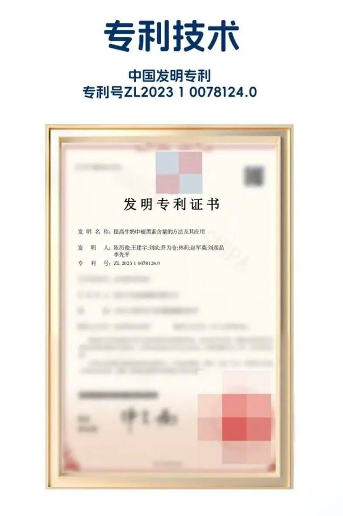以盒马推出的“晚安牛奶”为例,这款产品借助技术手段提升了原料奶中的褪黑素含量。其生产委托方三元,早在2023年就申请了“提高牛奶中褪黑素含量的方法及其应用”的专利,并在当年9月获得授权。