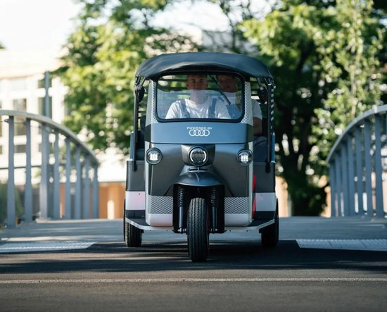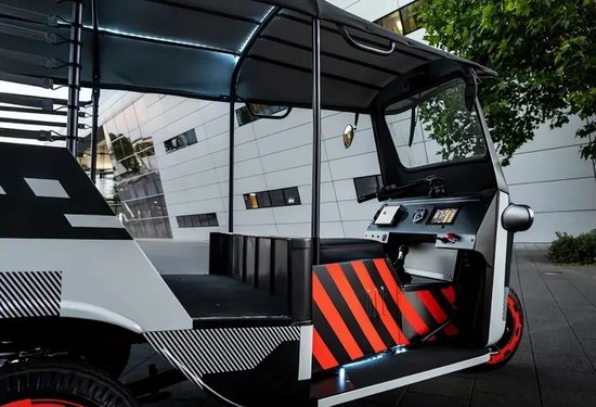 奥迪这款电动三轮车是与印度初创公司Nunam合作的“跨界之作”,2024年在印度亮相,当时计划是2025年量产,起售价约1.2万人民币。